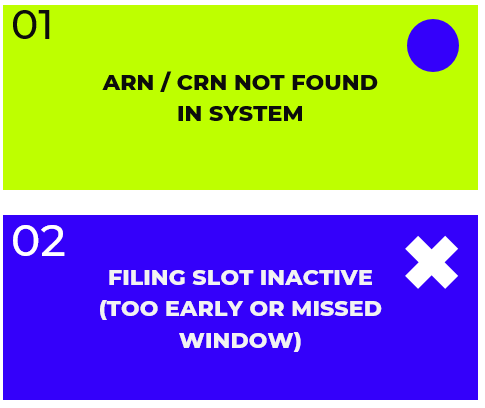 - Filing Slot Inactive (Too Early or Missed Window):