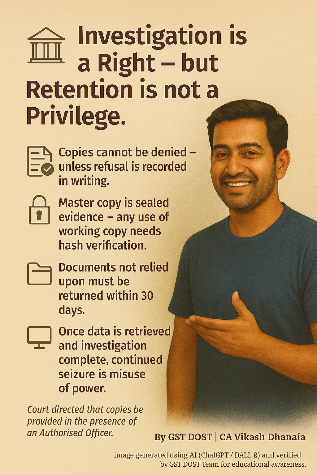 Today we unpack a short but significant Delhi High Court order that every taxpayer should know. If your phones, laptops, or hard drives are seized during a GST search, what are your rights—especially to get copies of your own data? This case gives crisp answers.